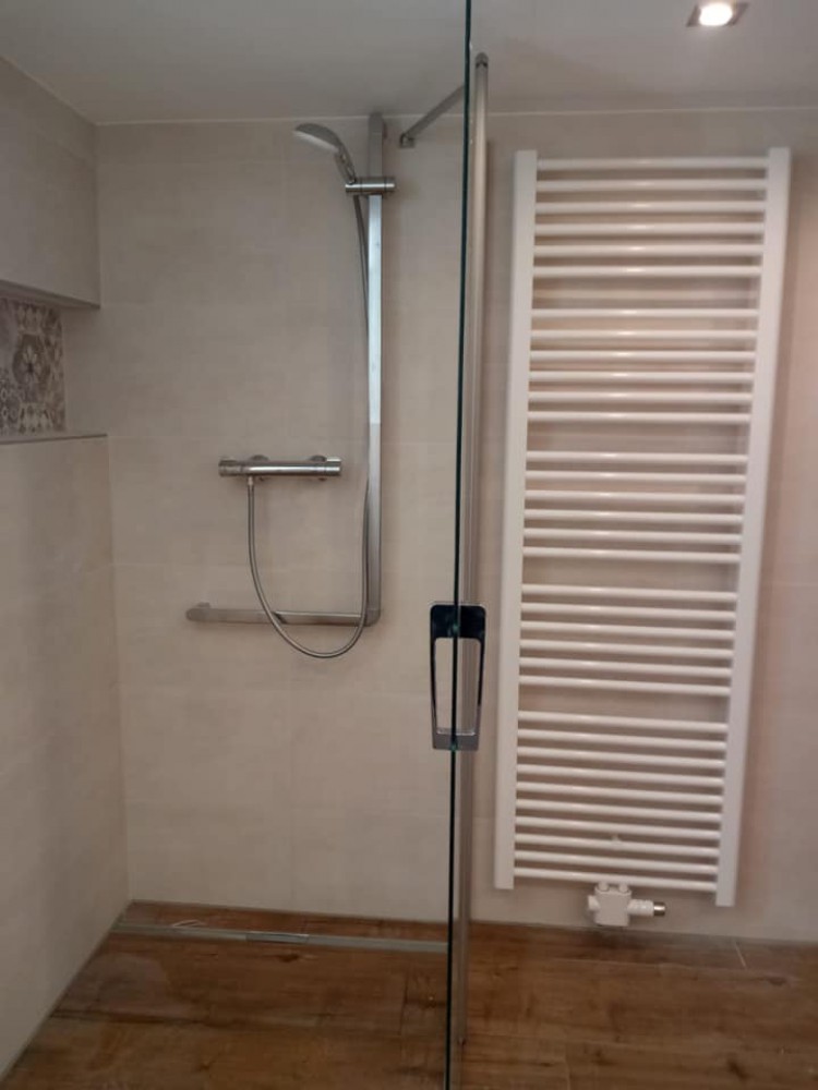 Es ist immer wieder schön, wenn man älteren Menschen mit dem Umbau eines Bades helfen kann. Wo einst die schwer benutzbare Badewanne war, kann heute bodengleich geduscht werden und ein erhöhtes Wand-WC erleichtert auch im normalen Leben. Danke für den Auftrag an unsere Kunden und die gute Zusammenarbeit mit der Firma Fliesen Manz.